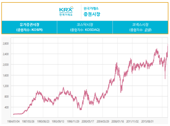 < 코스피지수의 1984년부터 현재까지의 지수 그래프 >
