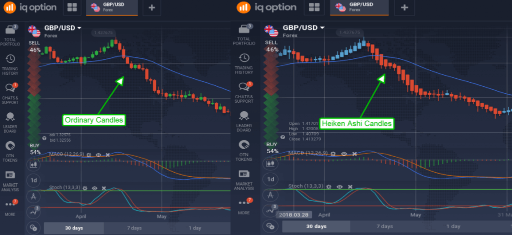Heikin-Ashi 형식으로 차트를 자동으로 표시하는 Heikin-Ashi 모드로 전환할 수 있는 옵션을 제