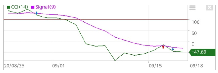 2) CCI값이 +이면 상승세, -이면 하락세이다.