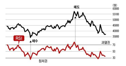 일정기간 해당 종목의 가격이 오르고 내린 변동폭을 가지고 만든 상대강도지수라고 불리는 RSI(Relative Strength Index) 지표는 기술적 분석이나 차트 분석 등에 사용되는 보조지표로써 일명 상대강도지수라고 불리우며, 가격의 상승과 하락의 상대적인 강도를 나타내는 지표로 RSI가 클수록 주가의 상승 강도가 크다는 뜻이며, 반대로 작을수록 주가의 하락 강도가 크다는 뜻이다.